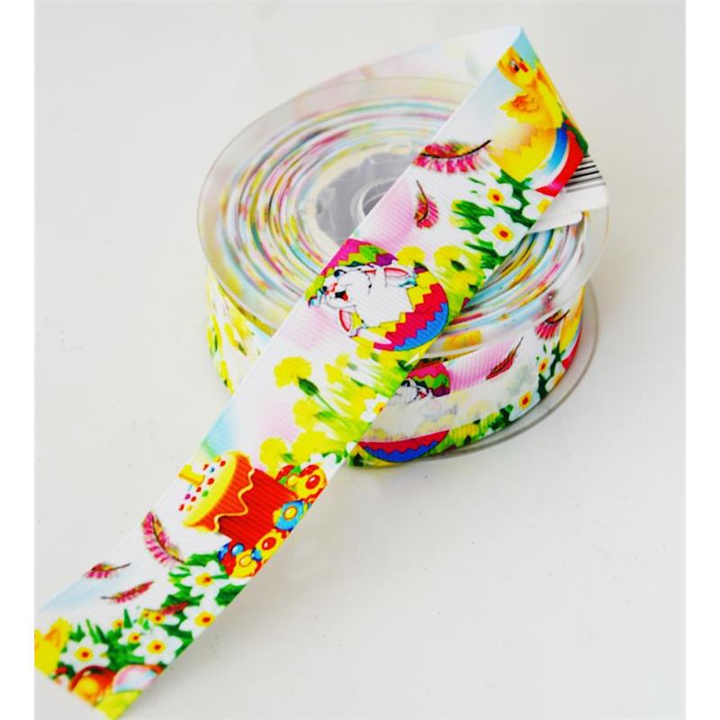Tasiemka rypsowa z motywem wielkanocnym. Kolor zielony. Szerokość 25mm. Cena za 1metr.