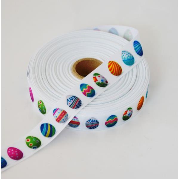 Tasiemka rypsowa ozdobna. Kolorowe jajka. Szerokość 2cm. Cena za 1 metr.