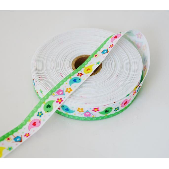 Taśma rypsowa ozd. 2cm/25m ptaszki