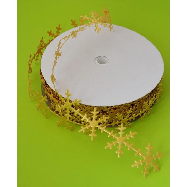 Tasiemka ozdobna śnieżynka. CP100165. Kolor złoty. Wielkośc 25mm. Cena za 1 metr.