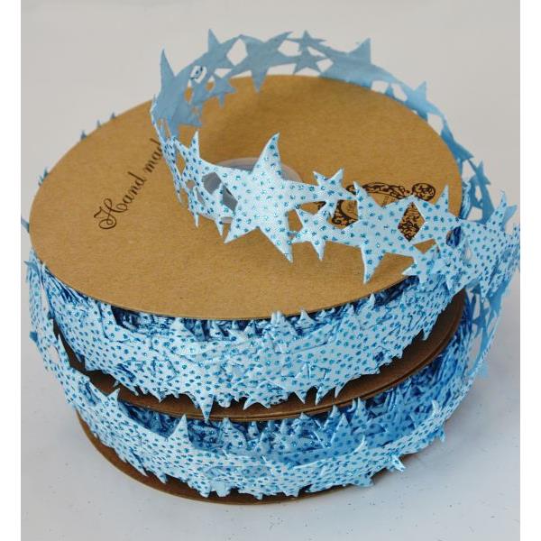 Tasiemka ozdobna gwiazdka. CP100189. Kolor niebieski z brokatem. Wielkośc 30mm. Cena za 1 metr.