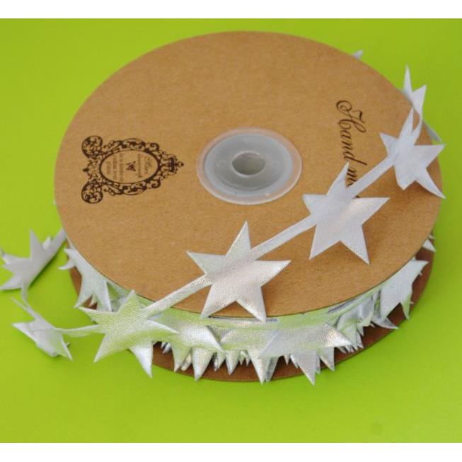Tasiemka ozdobna gwiazdka. CP100182. Kolor srebrny. Wielkośc 32mm. Cena za 1 metr.