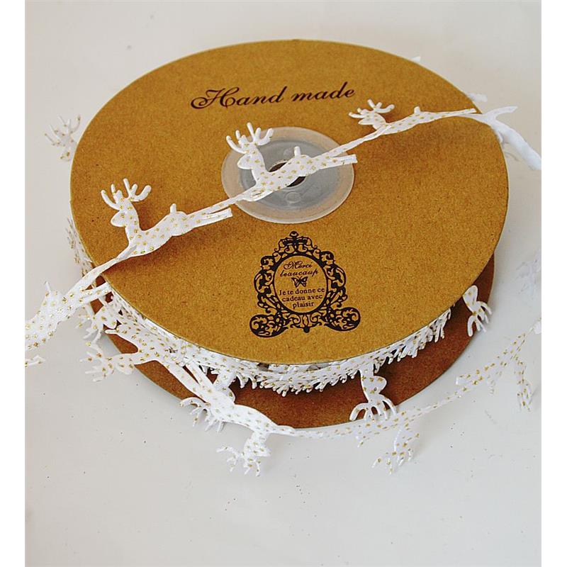 Tasiemka ozdobna renifer. CP100196. Kolor biały ze złotym brokatem. Wielkość 35mm/30mm. Cena za 1metr.