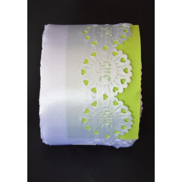 Koronka jednostronna z motywem IHS wz 104. Kolor biał. Szerokość 6cm. Cena za 1 metr.