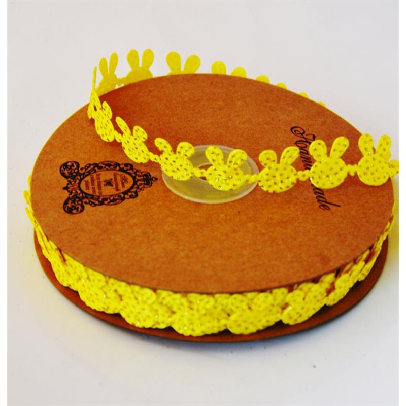 Aplikacja na metry. głowa zająca .kolor żółty brokat. Szerokość 18mm. Cena z a1 metr