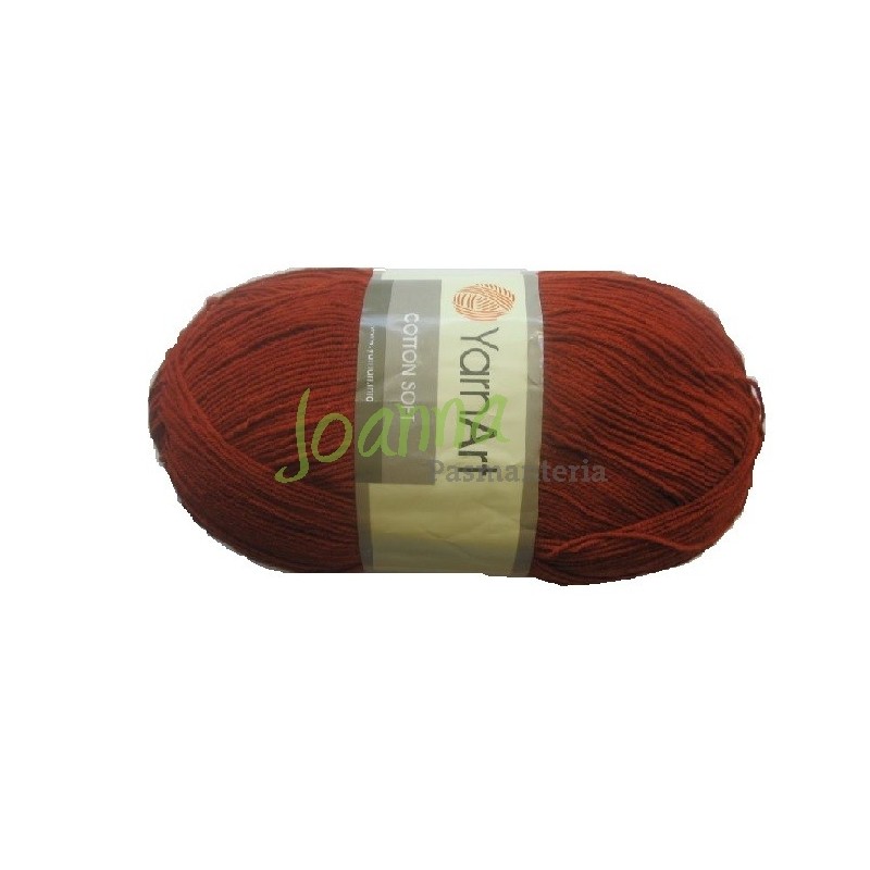 Włóczka Cotton Soft. Kolor 43 rudy. Skład: 55% bawełny 45% akrylu. 100 gr/600 metrów. Zalecane druty oraz szydełko numer 2,5.