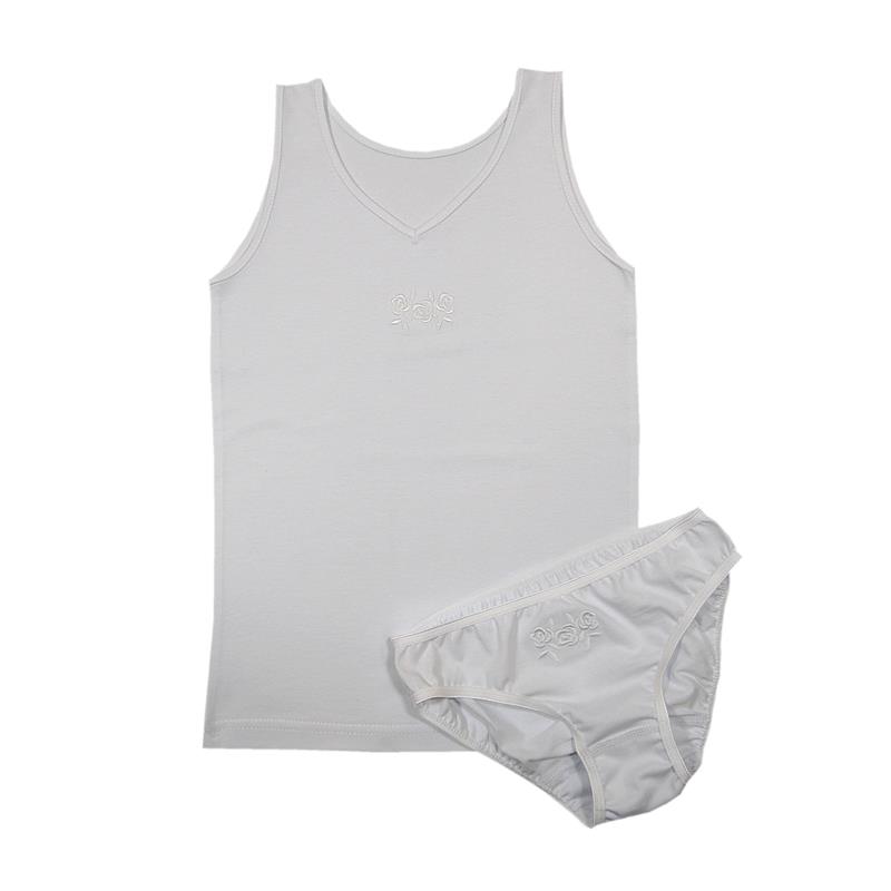Kpl. bielizny dziewczęcej. Róża. Kolor biały. Rozmiar 158 cm. Polski producent. Bawełna 100% z haftem .Cena za komplet: podkoszulka na szleczkach i majtki.