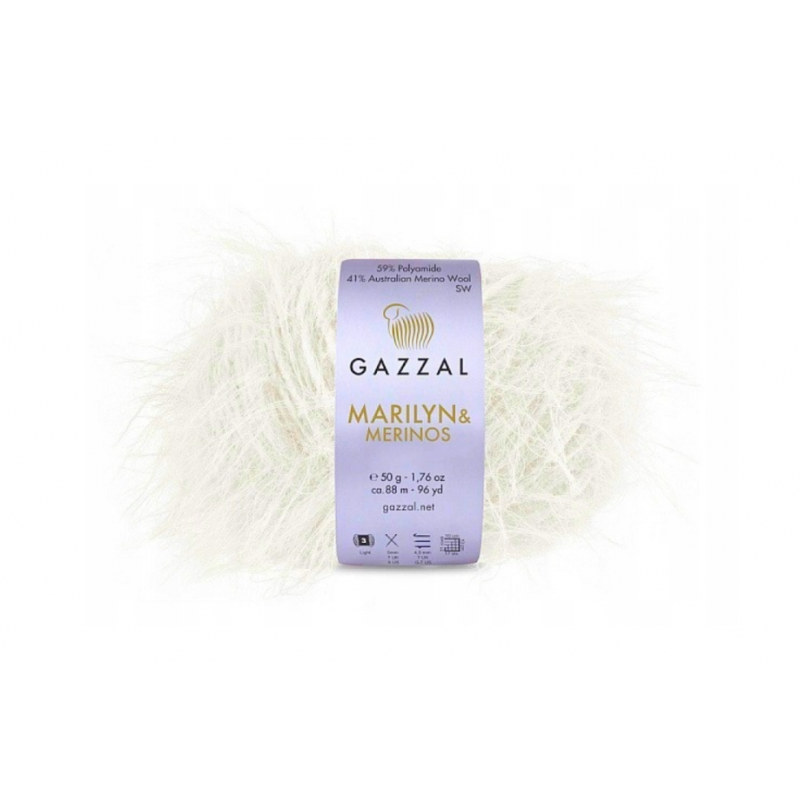 Gazzal Marilyn & Merinos to bardzo miła w dotyku, delikatna i puszysta włóczka z dodatkiem australijskiej wełny merynosowej typu Superwash.