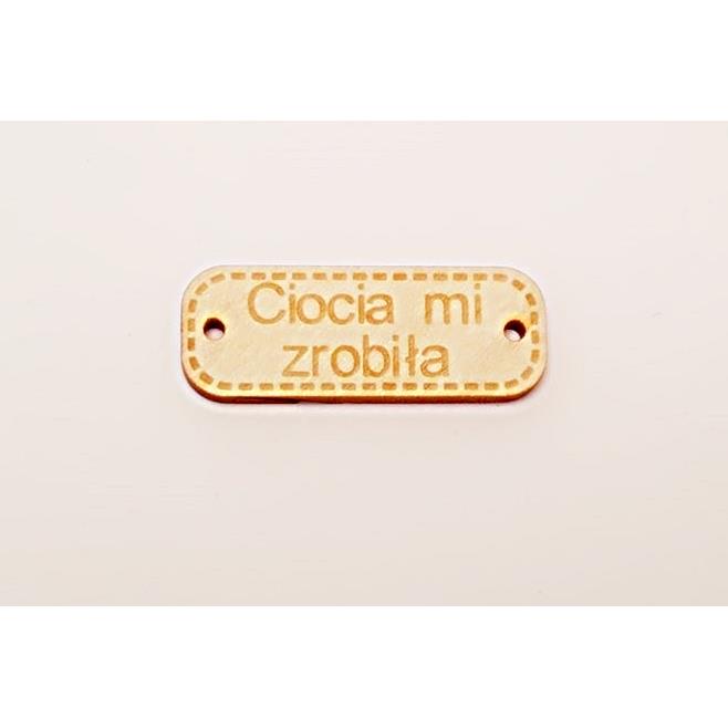 Przywieszka drewniana Ciocia mi zrobiła. Szerokośc 40mm/ 15mm. Kolor naturalny cena za 1 sztukę.
