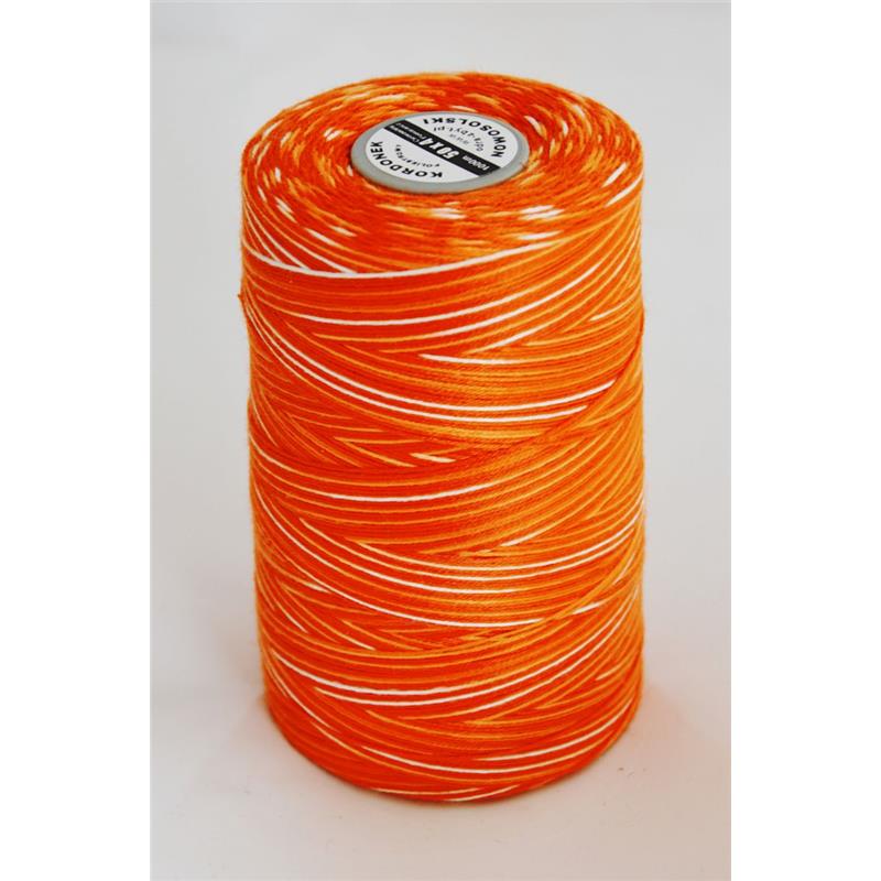 Kordonek Nowosolski. 50x4. 1000m/szpulka. Kolor pomarańczow cieniowany.Jest to poliester. A wygląda jak bawełna. Nie błyszczy się. Nitka nie jest merceryzowana, ma drobne włoski.Świetnie nadają się do wszelkiego rodzaju robótek ręcznych takich jak szydełkowanie, koronki, frywolitki i inne.Idealne do szydełkowania obrusów, firanek, serwetek a także bluzeczek , bielizny i wszystkiego co tylko nam przyjdzie do głowy.Sprawdzają się również przy wyszywaniu i haftowaniu. Cena za 1 szpulkę.