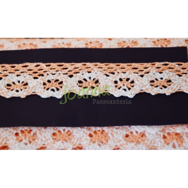 Koronka bawełniana 259 Kolor biało-łososiowa. Szerokość 25mm. cena za 1 metr.