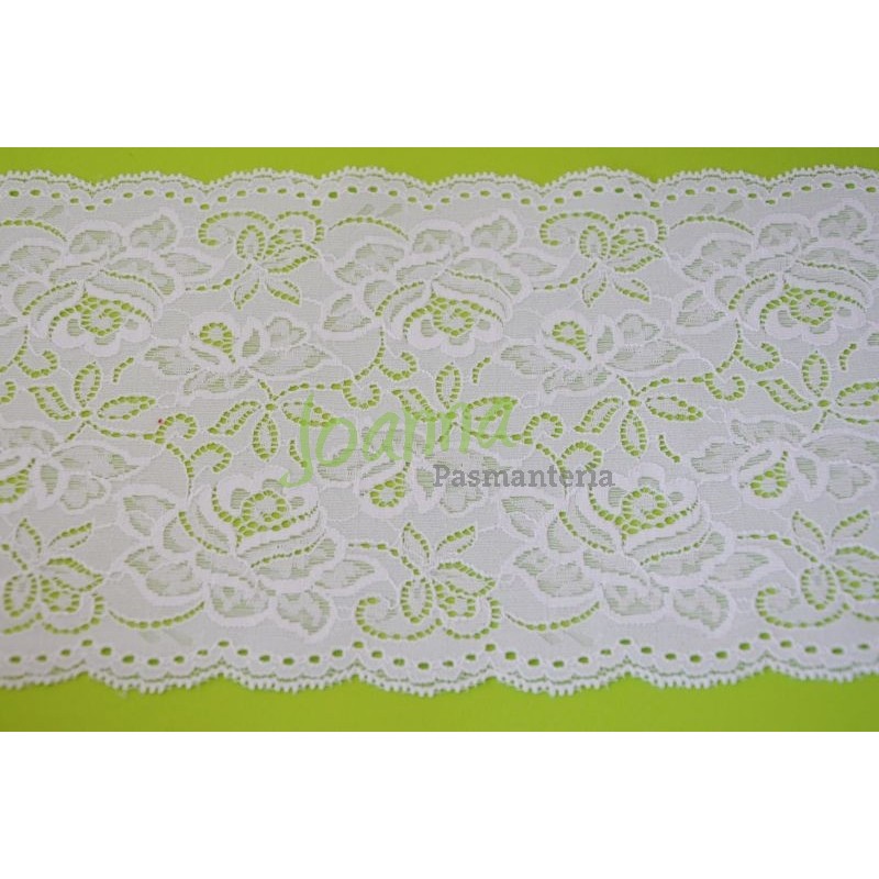 Koronka elastyczna E-1796. Szerokość 16,5cm. Kolor biały. Skład: 88%PA 12%EA . Cena za 1metr.
