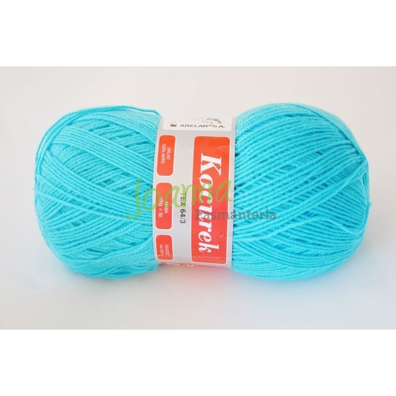 Włóczka KOCUREK. 16-2215 turkus. Polski producent. Skład 100% akryl. 100g/ 520m. Cienka, bardzo wydajna i przyjemna w dotyku włóczka akrylowa. Doskonała na wiosenno-letnie wyroby. Zalecane szydełko 3mm, zalecane druty 3mm.
