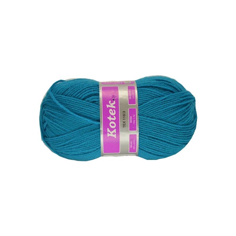 Włóczka Kotek. Polski producent ARELAN. Kolor 16-2210 turkus. 100% akryl. 100g/300m. Zalecane druty: 3- 3,5 mm. Zalecane szydełko: 3,5 mm Doskonała do wszelkich wyrobów dziewiarskich. Cena za 1 motek.
