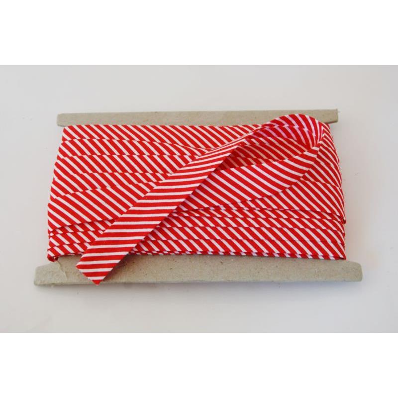 Lamówka bawełniana zaprasowana. Kolor czerwony w białe paski. Szerokośc 18mm. Cena za 1metr.