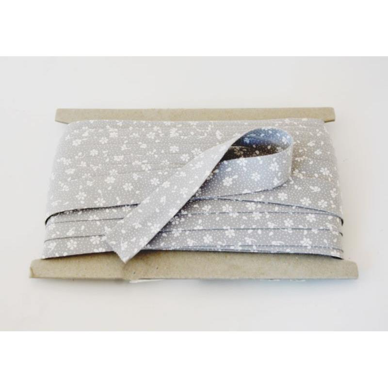 Lmaówka bawełniana zaprasowana. Kolor j.szary kwiatki Szerokośc 18mm. Cena za 1metr.
