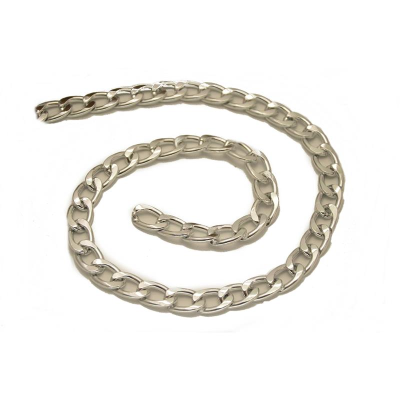 Łańcuch na metry. Kolor srebrny. Wielkość ogniwa 21mm/14mm. Cena za 1 metr. Łańcuch aluminiowy dekoracyjny, wykorzystywany jako np. rączka do torebki lub do wszelkich elementów dekoracyjnch.