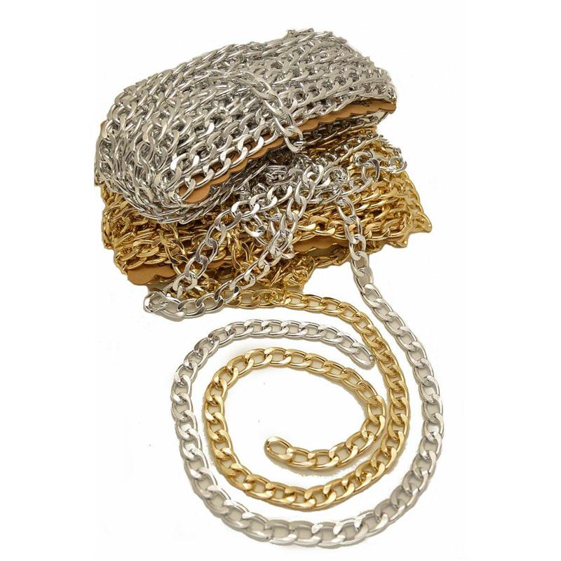 Łańcuch na metry. Kolor srebrny. Wielkość ogniwa 21mm/14mm. Cena za 1 metr. Łańcuch aluminiowy dekoracyjny, wykorzystywany jako np. rączka do torebki lub do wszelkich elementów dekoracyjnch.