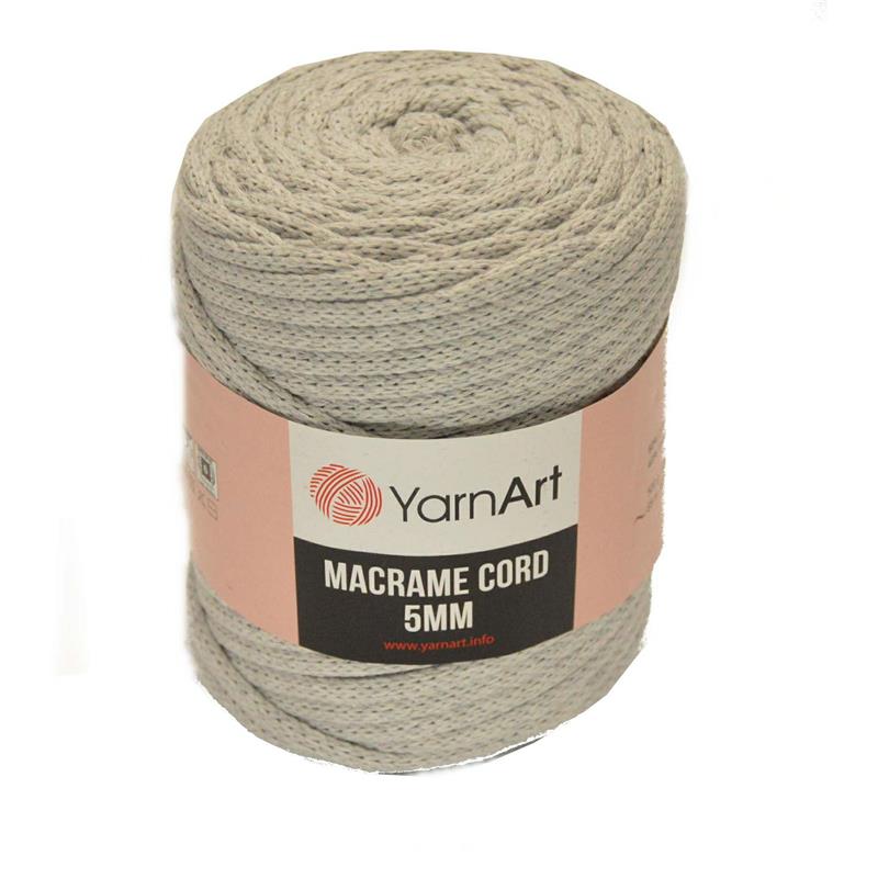 Sznurek Macrame CORD 5mm. Yarn Art. Kolor 756 jasno szary. Skład: 60% Cotton 40% Viscoze. 500g/85metrów. Zalecane druty 9mm. Zalecane szydełko 10mm. Sznurek stosuje się do zaplatania makramy a także do dziergania torebek, koszyków, podkładek i dywaników.