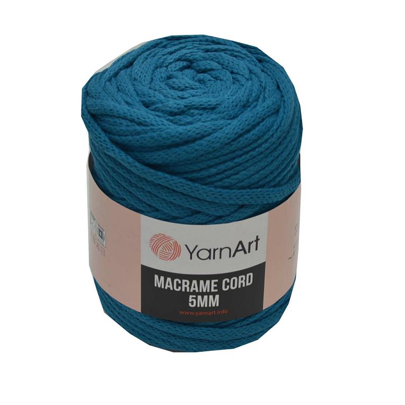 Sznurek Macrame CORD 5mm. Yarn Art. Kolor 789 ciemny turkus Skład: 60% Cotton 40% Viscoze. 500g/85metrów. Zalecane druty 9mm. Zalecane szydełko 10mm. Sznurek stosuje się do zaplatania makramy a także do dziergania torebek, koszyków, podkładek i dywaników.