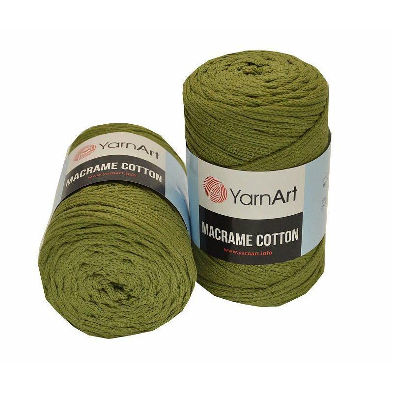 Włóczka Macrame Cotton. Skład: 85% Bawełna 15% Poliester.Kolor oliwka 787 . Włóczka-sznurek szerokość 3mm. 250g/225m. Turecki sznurek używany do zaplatania techniką makrama ,a także do szydełkowania. Cena za 1 motek. Zalecane druty 5mm, Zalecane szydełko 5mm.