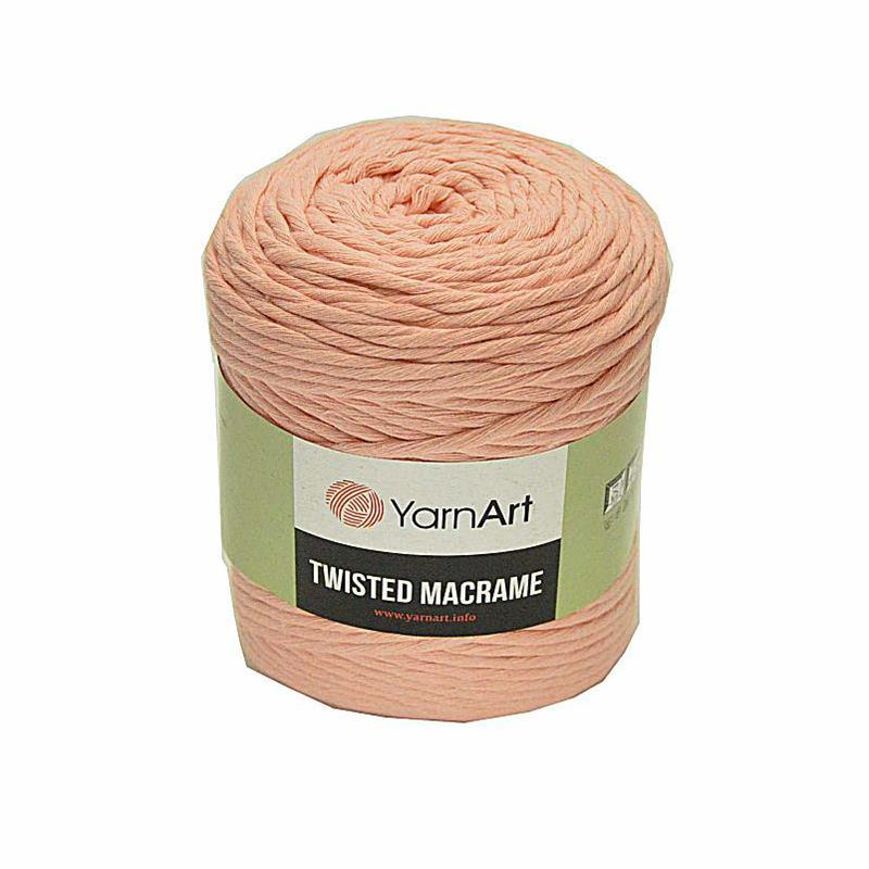Sznurek Macrame Twisted. Yarn Art. Kolor 767 łosoś Skład: 60% Cotton 40% Viscoze. 500g/210metrów. Zalecane druty 9mm. Zalecane szydełko 10mm. Sznurek stosuje się do zaplatania makramy a także do dziergania torebek, koszyków, podkładek i dywaników. Swietnie nadaje się do macramowych piórek.