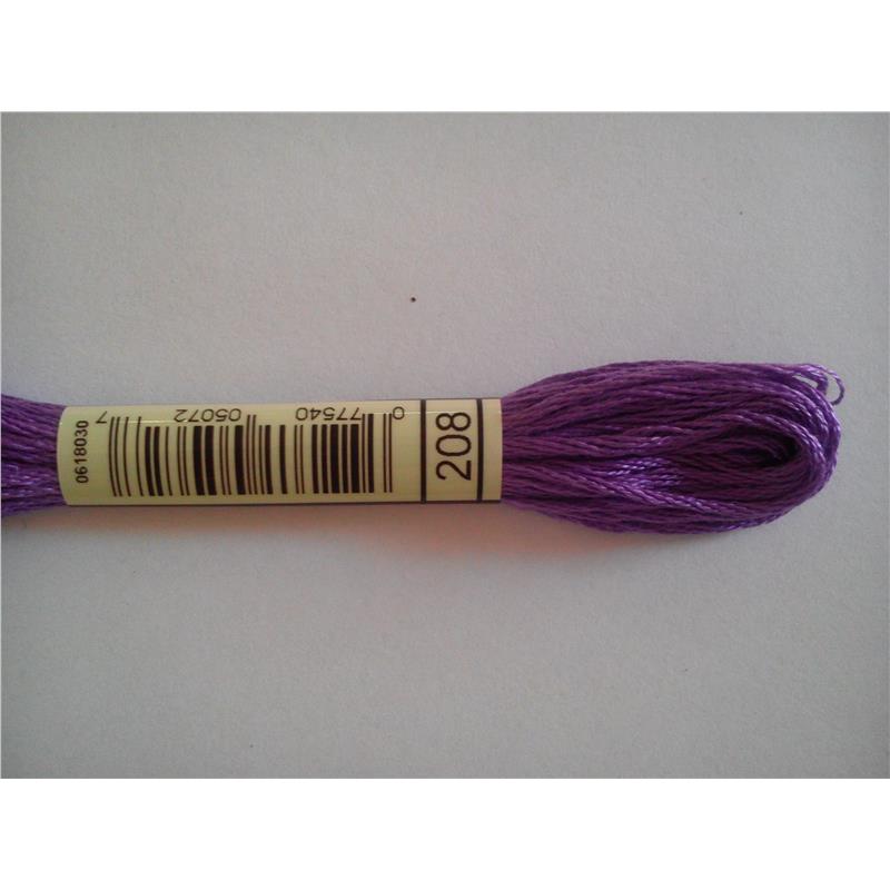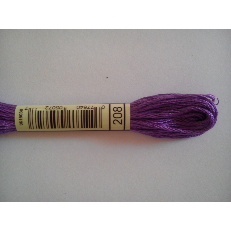 Mulina DMC kolor 208 - pasemko bawełniane 8m/8yd, dzieli się na 6 nitek. Najwyższej jakości podwójnie merceryzowana bawełna długowłóknista nadaje tej nici wyjątkowego połysku. Technika: haft krzyzykowy, haft półkrzyżykowy, haft płaski, igłą malowane.