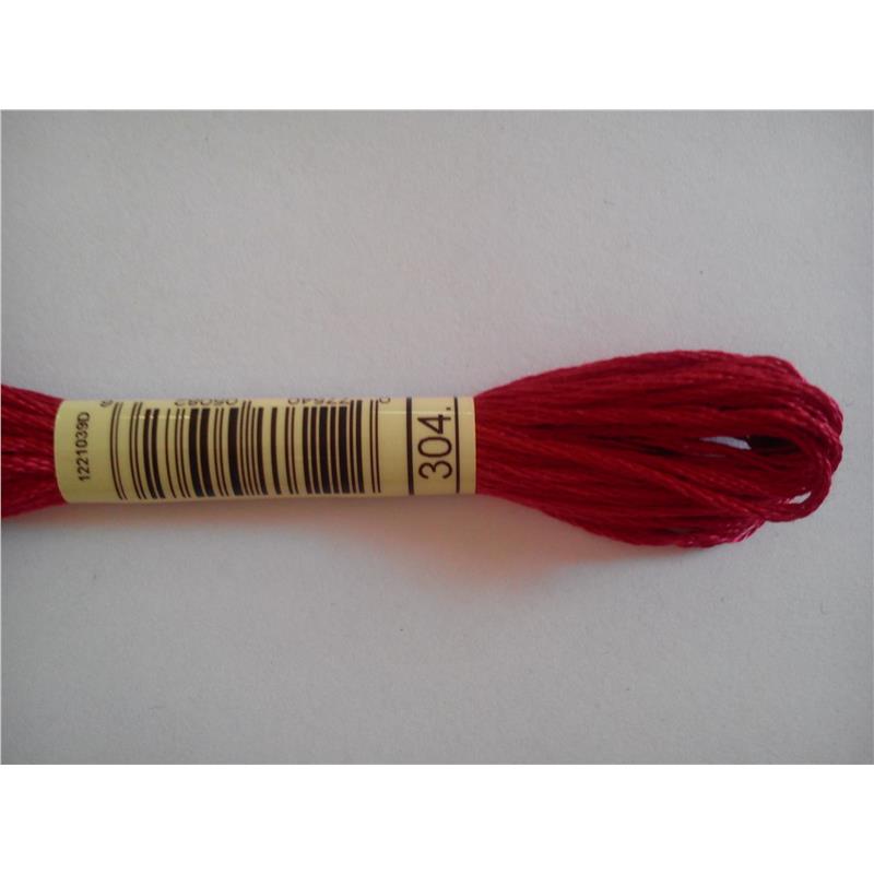 Mulina DMC kolor 304 - pasemko bawełniane 8m/8yd, dzieli się na 6 nitek. Najwyższej jakości podwójnie merceryzowana bawełna długowłóknista nadaje tej nici wyjątkowego połysku. Technika: haft krzyzykowy, haft półkrzyżykowy, haft płaski, igłą malowane.