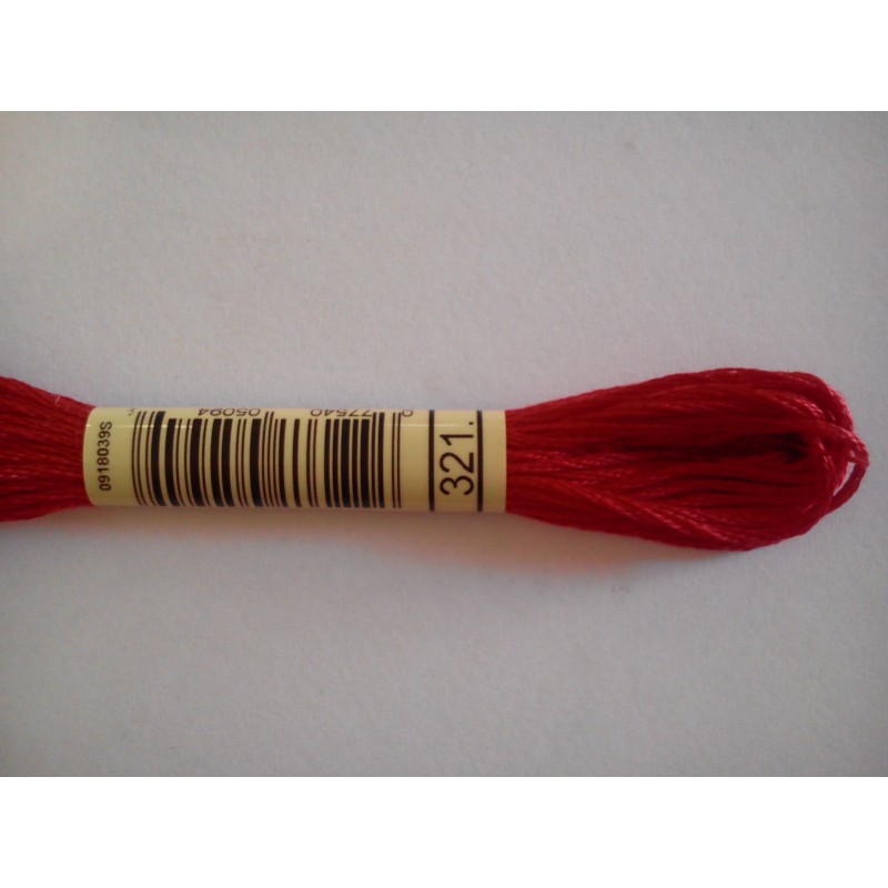 Mulina DMC kolor 321 - pasemko bawełniane 8m/8yd, dzieli się na 6 nitek. Najwyższej jakości podwójnie merceryzowana bawełna długowłóknista nadaje tej nici wyjątkowego połysku. Technika: haft krzyzykowy, haft półkrzyżykowy, haft płaski, igłą malowane.