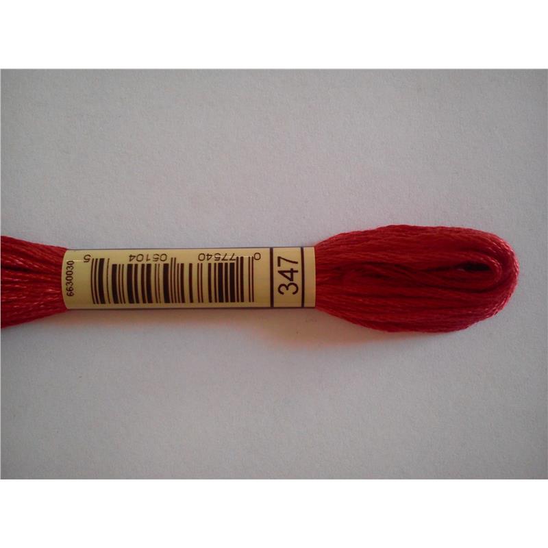 Mulina DMC kolor 347 - pasemko bawełniane 8m/8yd, dzieli się na 6 nitek. Najwyższej jakości podwójnie merceryzowana bawełna długowłóknista nadaje tej nici wyjątkowego połysku. Technika: haft krzyzykowy, haft półkrzyżykowy, haft płaski, igłą malowane.