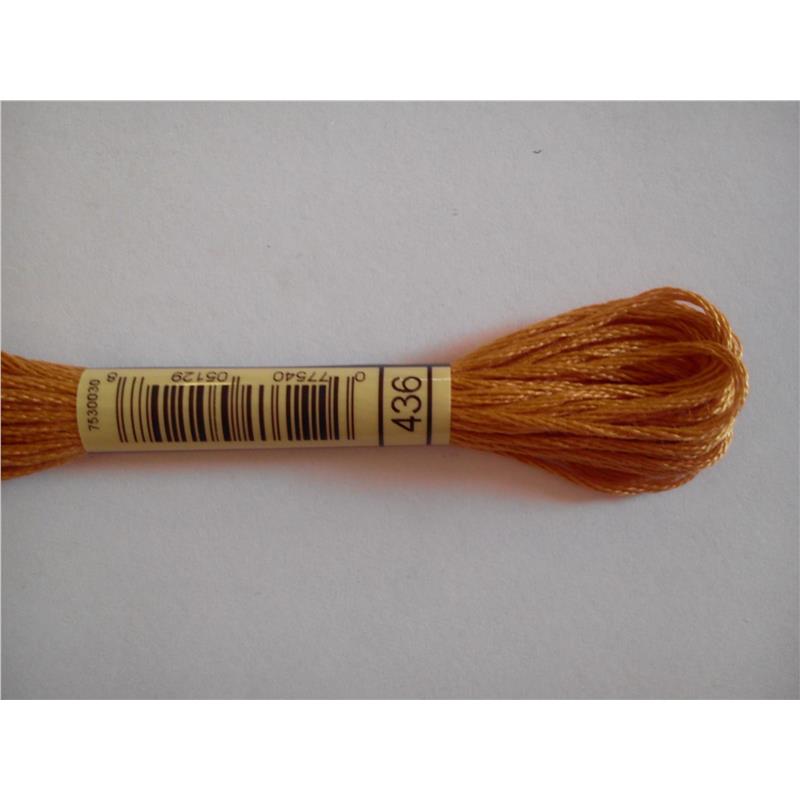 Mulina DMC kolor 436 - pasemko bawełniane 8m/8yd, dzieli się na 6 nitek. Najwyższej jakości podwójnie merceryzowana bawełna długowłóknista nadaje tej nici wyjątkowego połysku. Technika: haft krzyzykowy, haft półkrzyżykowy, haft płaski, igłą malowane.
