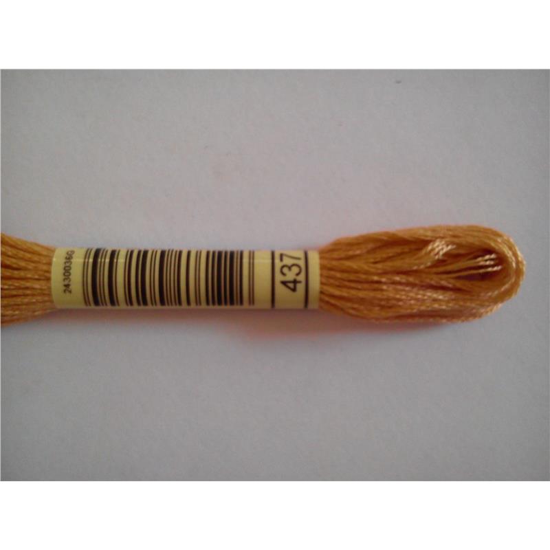Mulina DMC kolor 437 - pasemko bawełniane 8m/8yd, dzieli się na 6 nitek. Najwyższej jakości podwójnie merceryzowana bawełna długowłóknista nadaje tej nici wyjątkowego połysku. Technika: haft krzyzykowy, haft półkrzyżykowy, haft płaski, igłą malowane.