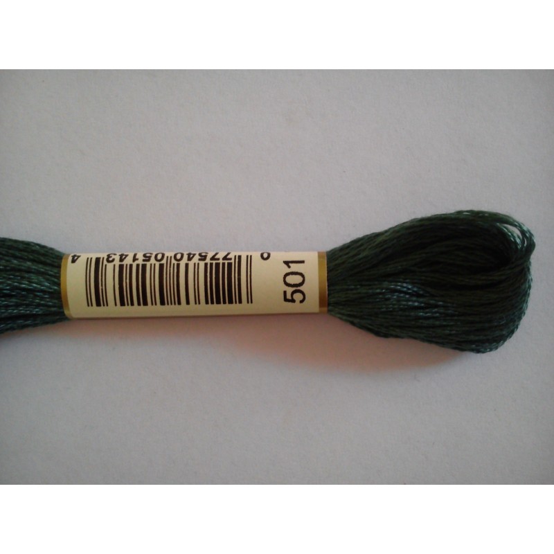 Mulina DMC kolor 501 - pasemko bawełniane 8m/8yd, dzieli się na 6 nitek. Najwyższej jakości podwójnie merceryzowana bawełna długowłóknista nadaje tej nici wyjątkowego połysku. Technika: haft krzyzykowy, haft półkrzyżykowy, haft płaski, igłą malowane.