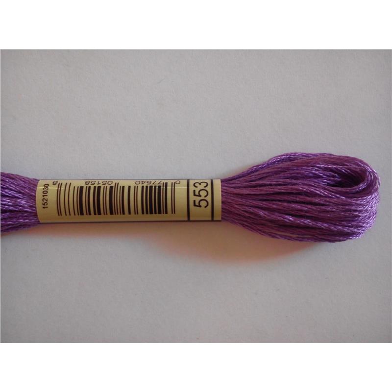 Mulina DMC kolor 553 - pasemko bawełniane 8m/8yd, dzieli się na 6 nitek. Najwyższej jakości podwójnie merceryzowana bawełna długowłóknista nadaje tej nici wyjątkowego połysku. Technika: haft krzyzykowy, haft półkrzyżykowy, haft płaski, igłą malowane.