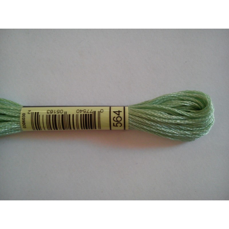 Mulina DMC kolor 564 - pasemko bawełniane 8m/8yd, dzieli się na 6 nitek. Najwyższej jakości podwójnie merceryzowana bawełna długowłóknista nadaje tej nici wyjątkowego połysku. Technika: haft krzyzykowy, haft półkrzyżykowy, haft płaski, igłą malowane.