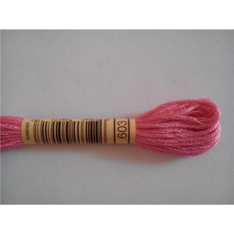 Mulina DMC kolor 603 - pasemko bawełniane 8m/8yd, dzieli się na 6 nitek. Najwyższej jakości podwójnie merceryzowana bawełna długowłóknista nadaje tej nici wyjątkowego połysku. Technika: haft krzyzykowy, haft półkrzyżykowy, haft płaski, igłą malowane.