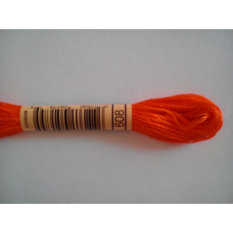Mulina DMC kolor 608 - pasemko bawełniane 8m/8yd, dzieli się na 6 nitek. Najwyższej jakości podwójnie merceryzowana bawełna długowłóknista nadaje tej nici wyjątkowego połysku. Technika: haft krzyzykowy, haft półkrzyżykowy, haft płaski, igłą malowane.