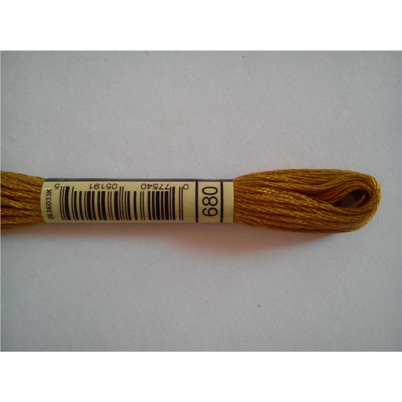 Mulina DMC kolor 680 - pasemko bawełniane 8m/8yd, dzieli się na 6 nitek. Najwyższej jakości podwójnie merceryzowana bawełna długowłóknista nadaje tej nici wyjątkowego połysku. Technika: haft krzyzykowy, haft półkrzyżykowy, haft płaski, igłą malowane.