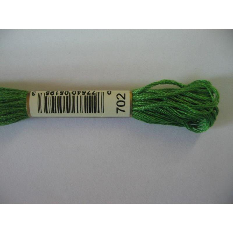 Mulina DMC kolor 702 - pasemko bawełniane 8m/8yd, dzieli się na 6 nitek. Najwyższej jakości podwójnie merceryzowana bawełna długowłóknista nadaje tej nici wyjątkowego połysku. Technika: haft krzyzykowy, haft półkrzyżykowy, haft płaski, igłą malowane.