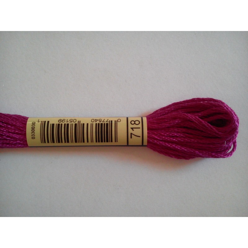 Mulina DMC kolor 718 - pasemko bawełniane 8m/8yd, dzieli się na 6 nitek. Najwyższej jakości podwójnie merceryzowana bawełna długowłóknista nadaje tej nici wyjątkowego połysku. Technika: haft krzyzykowy, haft półkrzyżykowy, haft płaski, igłą malowane.
