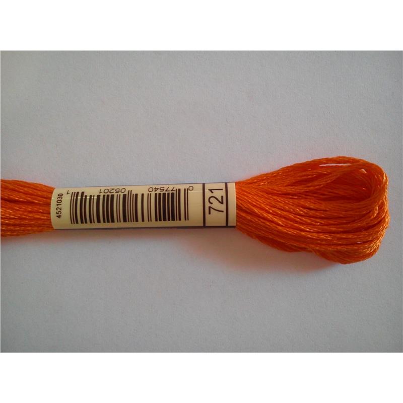 Mulina DMC kolor 721 - pasemko bawełniane 8m/8yd, dzieli się na 6 nitek. Najwyższej jakości podwójnie merceryzowana bawełna długowłóknista nadaje tej nici wyjątkowego połysku. Technika: haft krzyzykowy, haft półkrzyżykowy, haft płaski, igłą malowane.