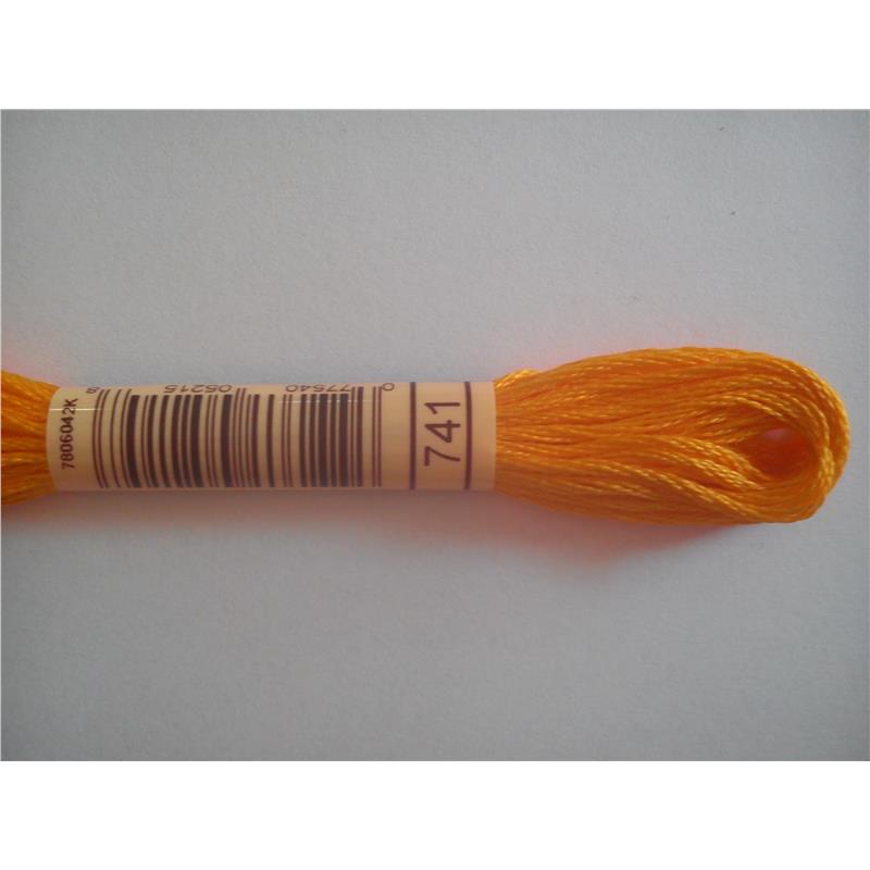 Mulina DMC kolor 741 - pasemko bawełniane 8m/8yd, dzieli się na 6 nitek. Najwyższej jakości podwójnie merceryzowana bawełna długowłóknista nadaje tej nici wyjątkowego połysku. Technika: haft krzyzykowy, haft półkrzyżykowy, haft płaski, igłą malowane.
