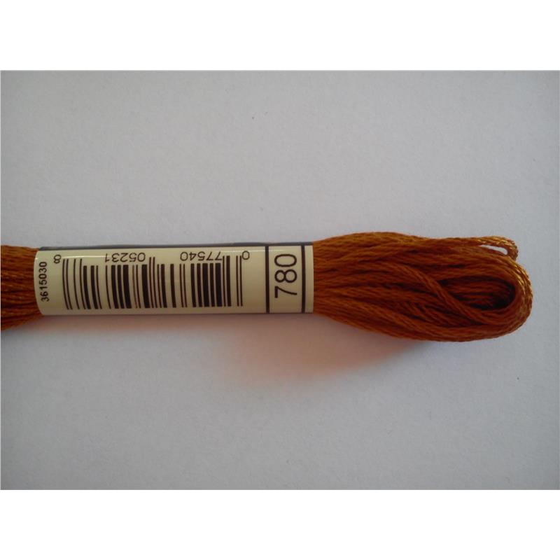 Mulina DMC kolor 780 - pasemko bawełniane 8m/8yd, dzieli się na 6 nitek. Najwyższej jakości podwójnie merceryzowana bawełna długowłóknista nadaje tej nici wyjątkowego połysku. Technika: haft krzyzykowy, haft półkrzyżykowy, haft płaski, igłą malowane.