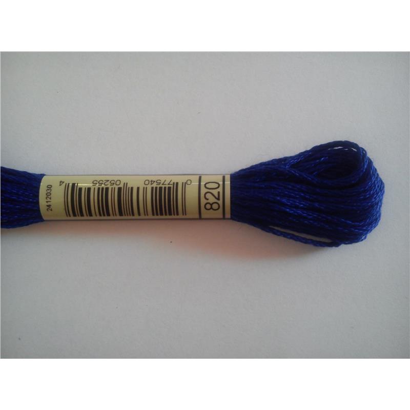 Mulina DMC kolor 820 - pasemko bawełniane 8m/8yd, dzieli się na 6 nitek. Najwyższej jakości podwójnie merceryzowana bawełna długowłóknista nadaje tej nici wyjątkowego połysku. Technika: haft krzyzykowy, haft półkrzyżykowy, haft płaski, igłą malowane.