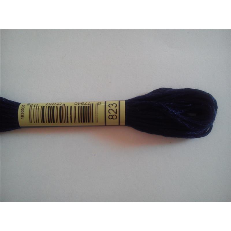 Mulina DMC kolor 823 - pasemko bawełniane 8m/8yd, dzieli się na 6 nitek. Najwyższej jakości podwójnie merceryzowana bawełna długowłóknista nadaje tej nici wyjątkowego połysku. Technika: haft krzyzykowy, haft półkrzyżykowy, haft płaski, igłą malowane.