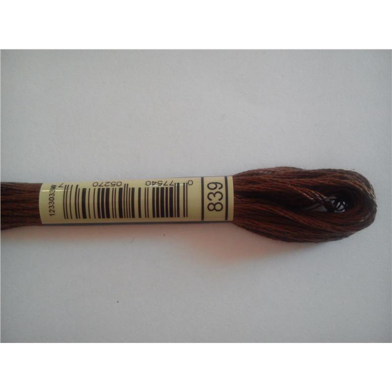 Mulina DMC kolor 838 - pasemko bawełniane 8m/8yd, dzieli się na 6 nitek. Najwyższej jakości podwójnie merceryzowana bawełna długowłóknista nadaje tej nici wyjątkowego połysku. Technika: haft krzyzykowy, haft półkrzyżykowy, haft płaski, igłą malowane.