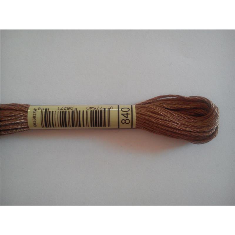 Mulina DMC kolor 840 - pasemko bawełniane 8m/8yd, dzieli się na 6 nitek. Najwyższej jakości podwójnie merceryzowana bawełna długowłóknista nadaje tej nici wyjątkowego połysku. Technika: haft krzyzykowy, haft półkrzyżykowy, haft płaski, igłą malowane.
