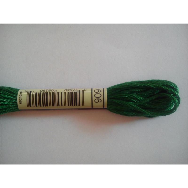 Mulina DMC kolor 909 - pasemko bawełniane 8m/8yd, dzieli się na 6 nitek. Najwyższej jakości podwójnie merceryzowana bawełna długowłóknista nadaje tej nici wyjątkowego połysku. Technika: haft krzyzykowy, haft półkrzyżykowy, haft płaski, igłą malowane.