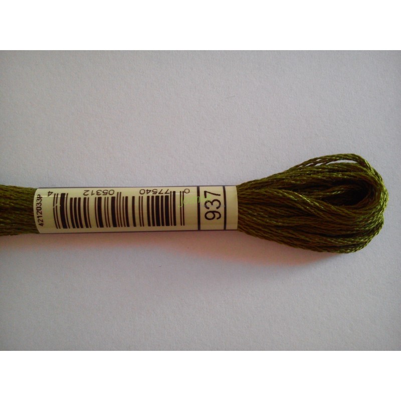 Mulina DMC kolor 937 - pasemko bawełniane 8m/8yd, dzieli się na 6 nitek. Najwyższej jakości podwójnie merceryzowana bawełna długowłóknista nadaje tej nici wyjątkowego połysku. Technika: haft krzyzykowy, haft półkrzyżykowy, haft płaski, igłą malowane.