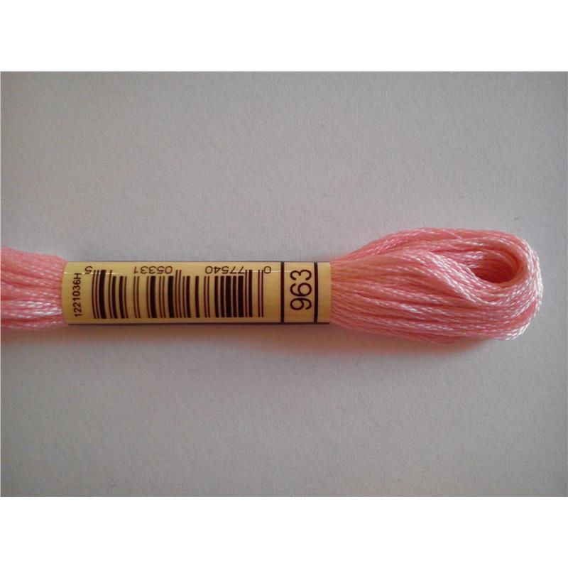 Mulina DMC kolor 963 - pasemko bawełniane 8m/8yd, dzieli się na 6 nitek. Najwyższej jakości podwójnie merceryzowana bawełna długowłóknista nadaje tej nici wyjątkowego połysku. Technika: haft krzyzykowy, haft półkrzyżykowy, haft płaski, igłą malowane.